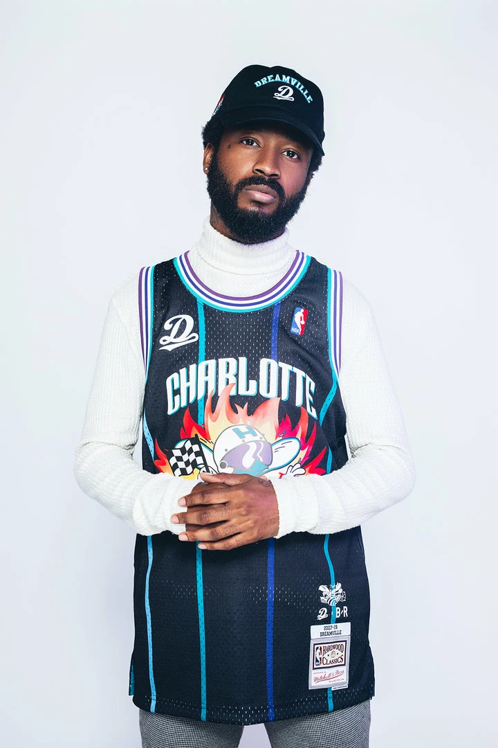 Dreamville reimagines the Charlotte Hornets logo in this limited edition collaboration with the NBA, Bleacher Report and Mitchell & Ness.