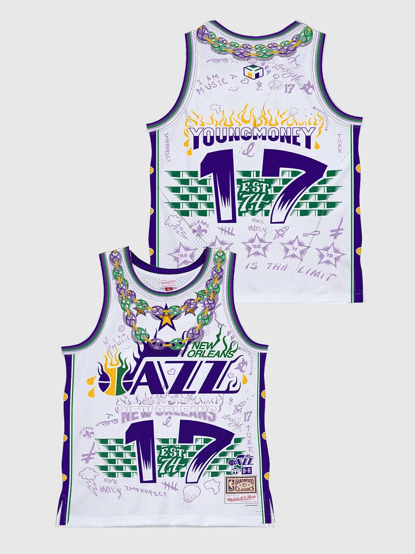 Lil Wayne reimagines the New Orleans Jazz in this limited edition collaboration with the NBA, Bleacher Report and Mitchell & Ness. This collection celebrates the legacy of New Orleans basketball and music.
