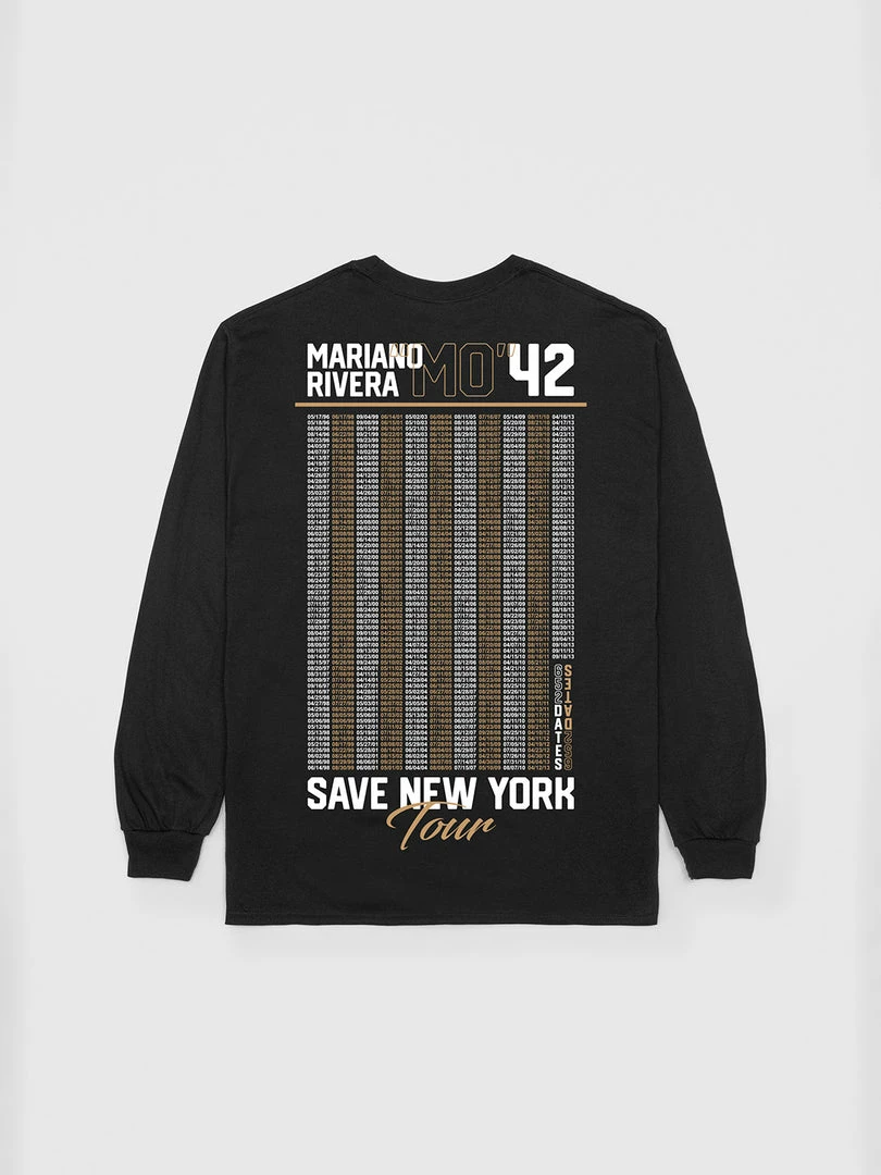 The “Save New York” long sleeve t-shirt commemorates Mariano Rivera’s legendary career and celebrates his 652 Saves, the most of any pitcher in baseball history. The Mariano Rivera World Tour collection is a collaboration between Mariano Rivera, Bleacher Report and The Peralta Project. The Peralta Project is a lifestyle brand founded by New York City native M. Tony Peralta.
