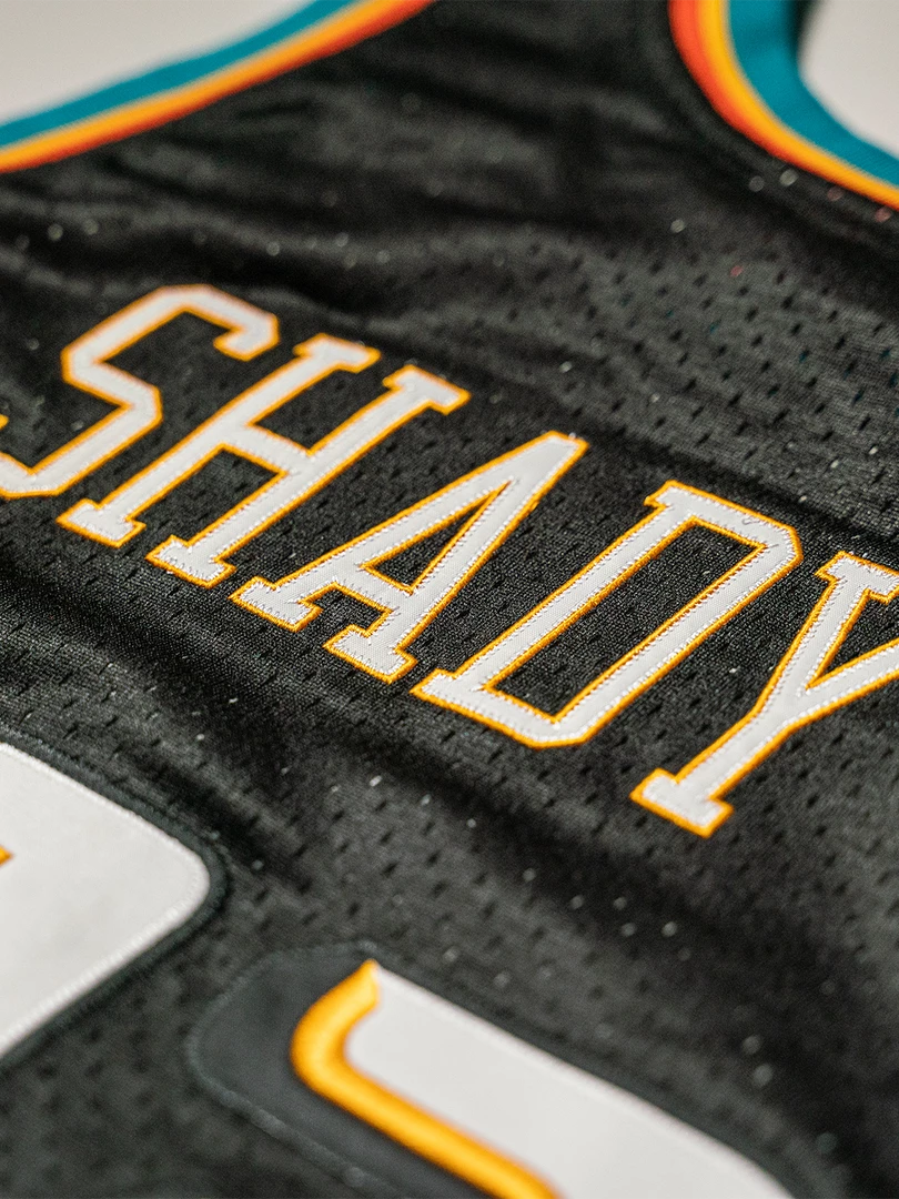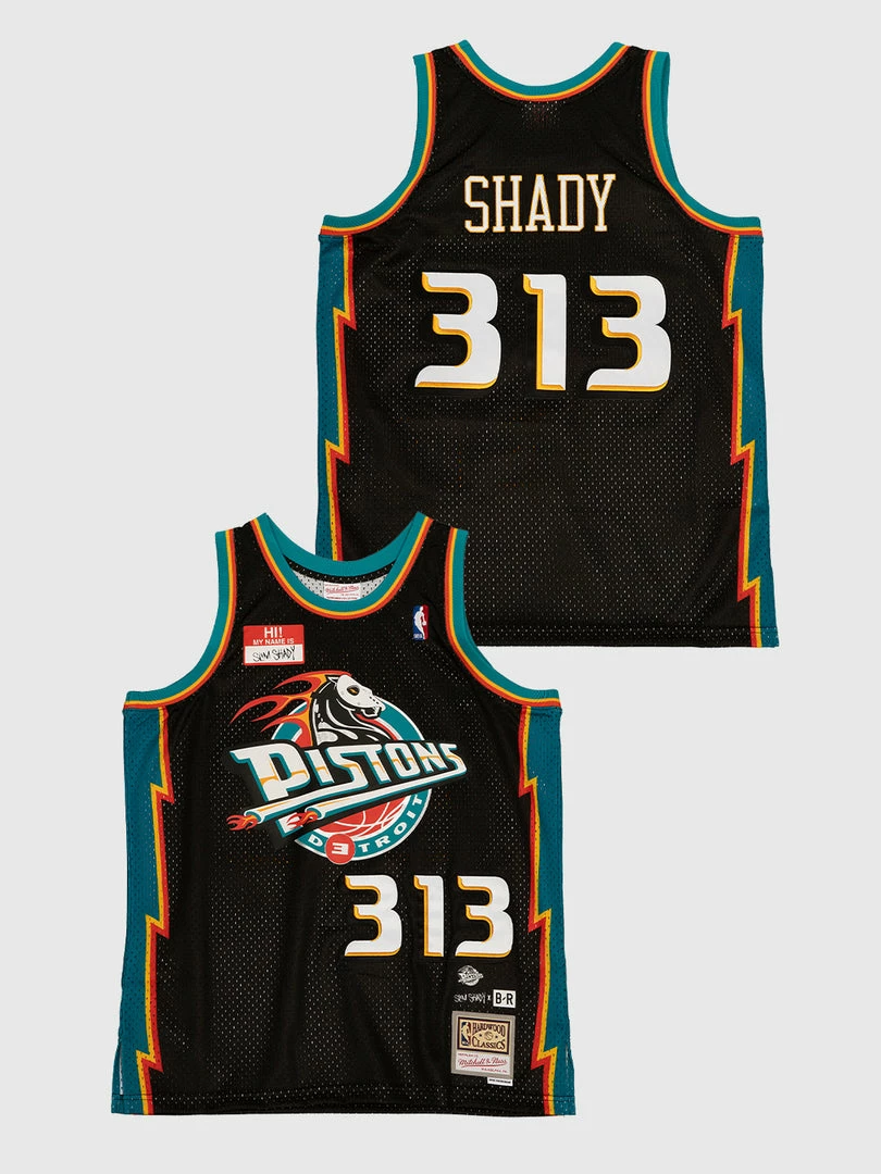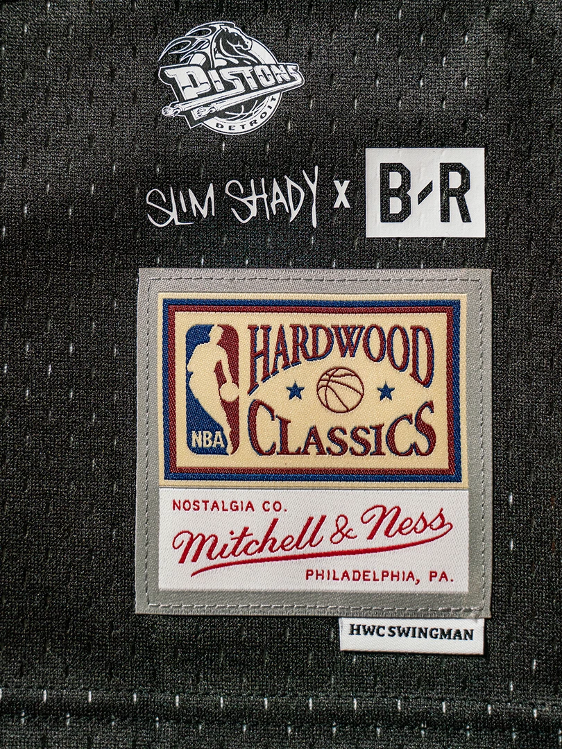 Eminem reimagines the Detroit Pistons in this limited edition collaboration with the NBA, Bleacher Report and Mitchell & Ness.
