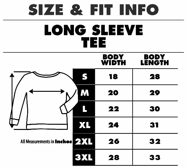This long sleeve t-shirt is available in unisex sizing and is 100% cotton.