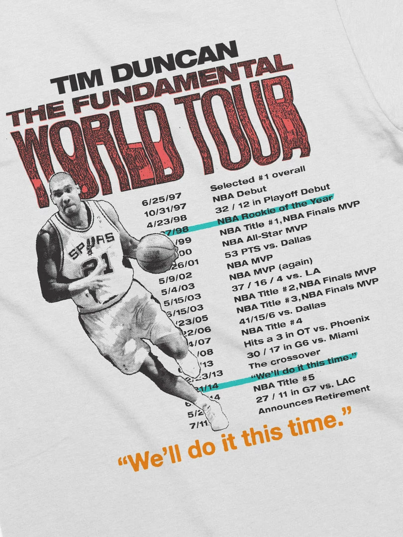 This collaboration honors Tim Duncan, one of the greatest to ever do it. Each “tour date” is connected to an iconic moment, achievement or memory from The Big Fundamental’s career.